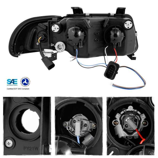 AKKON - For Audi A4 S4 Sport Sedan Black Bezel 1pc Design Halo Ring Projector Headlights w/Corner Signal Lamps