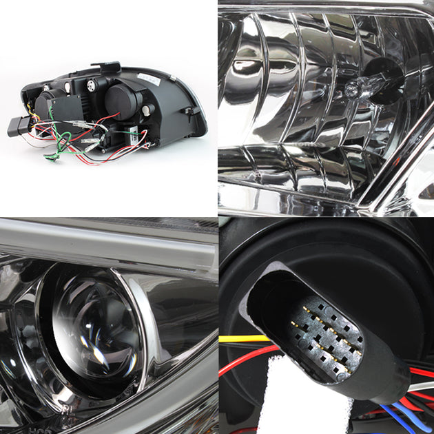AKKON - For Astro Safari Van Sedan Chrome Dual Halo Rings Design Halogen Type Projector Headlights Lamps Pair