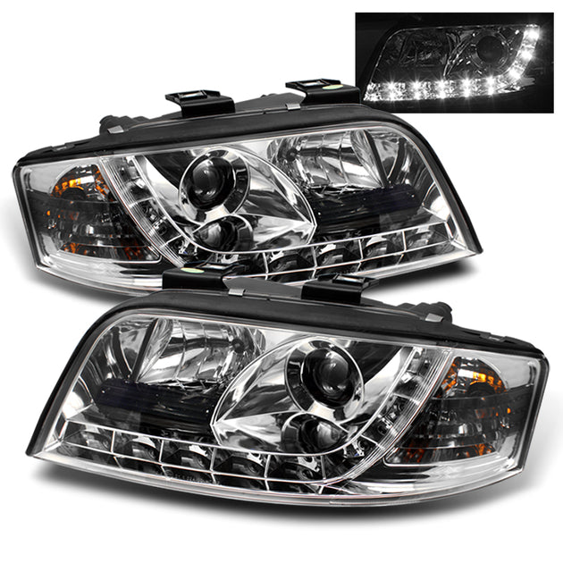 AKKON - For Audi A6 C5 Sport Sedan Chrome Clear DRL Daytime LED Strip Projector Headlights Lamps Left + Right