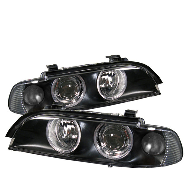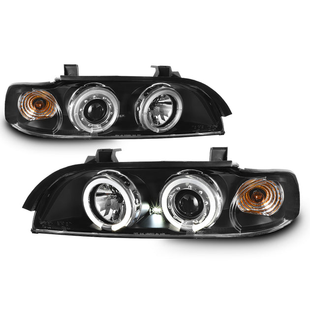 AKKON - For BMW E39 5-Series 525i 528i 530i 540i Dual Halo Projector Black Amber Headlights Lamps W/Factory Halogen Only
