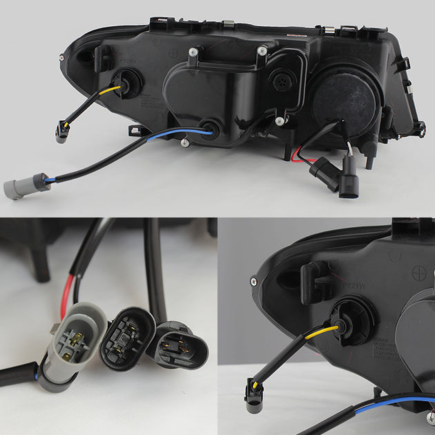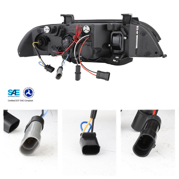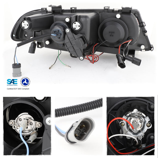 AKKON - For BMW E39 5 Series Black Bezel Halogen NON HID Type Projector Headlights Front Lamps Replacement Set