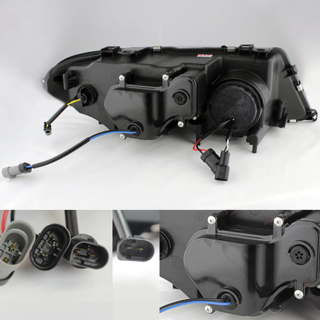 AKKON - For BMW E46 3-Series 4 Doors Sedan Black Bezel Halo Ring LED Projector Headlights Replacement Left+Right