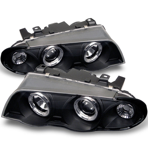 AKKON - For BMW E46 3-Series 2 Doors Coupe Black Halo Ring LED Projector Headlights Left + Right Replacement