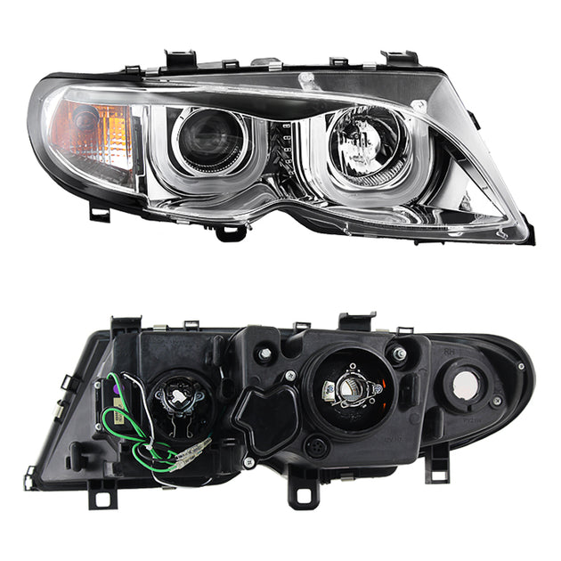 AKKON - For BMW E46 3-Series 2 Doors Coupe Chrome Halo Ring LED Projector Replacement Headlights LH/RH Lamps