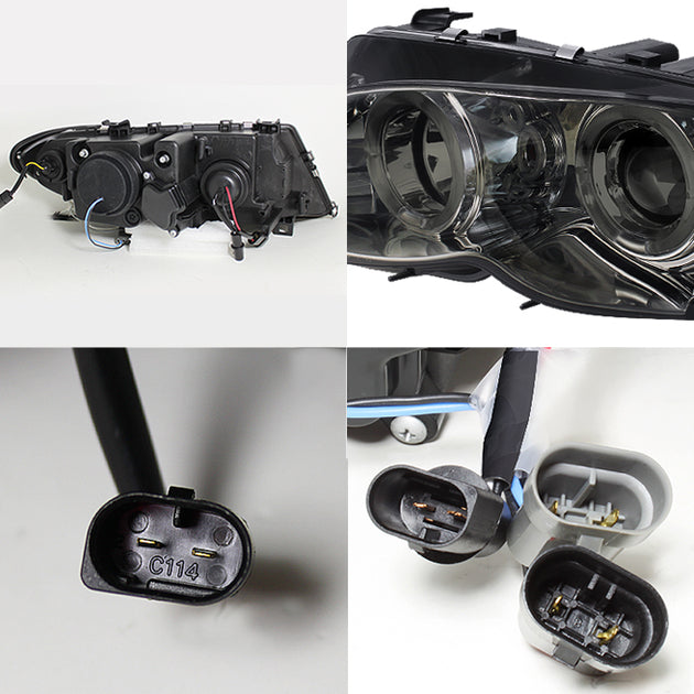 AKKON - For BMW E46 3-Series 4 Doors Sedan Smoke Dual Halo Ring LED Projector Headlights Left +Right Replacement