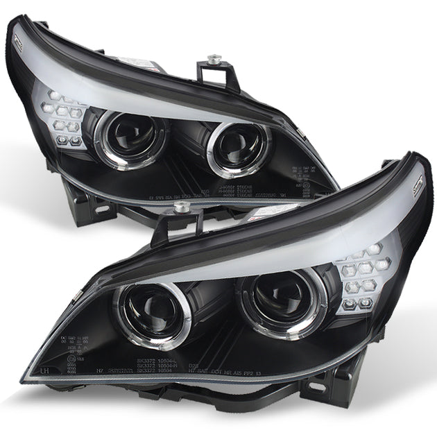 AKKON - For BMW E60 5 Series Black Bezel HID Type Dual Halo Projector Headlights w/Full LED Turn Signal Pair
