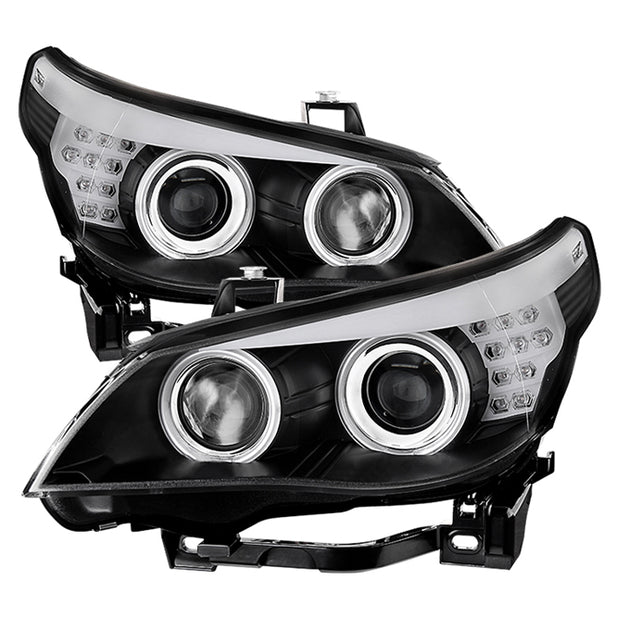 AKKON - For BMW E60 5 Series Black Bezel Halogen Type Dual CCFL Halo Projector Headlights w/Full LED Turn Signal
