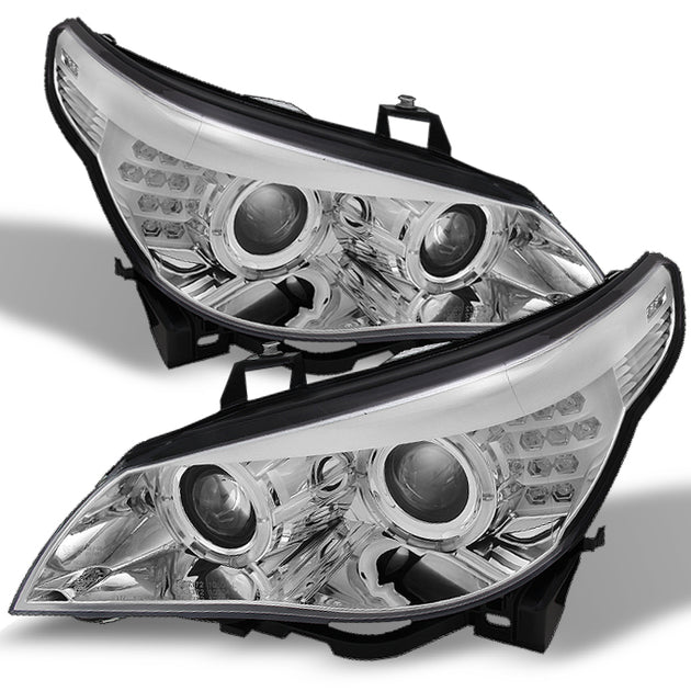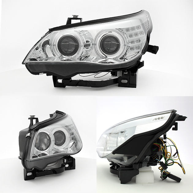 AKKON - For BMW E60 5 Series Chrome Clear HID Type Dual Halo Projector Headlights w/Full LED Turn Signal Pair