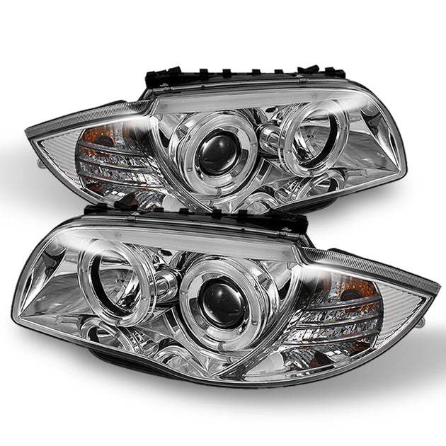 AKKON - For BMW E82 E88 1 Series Sport Coupe Halogen Type Chrome Clear Dual Halo Projector Headlights Lamps Pair