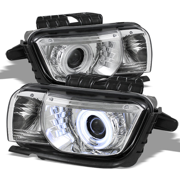 AKKON - For Chevy Camaro Chrome Clear Dual CCFL Halo Ring Design Halogen Type Projector Headlights Lamps Pair