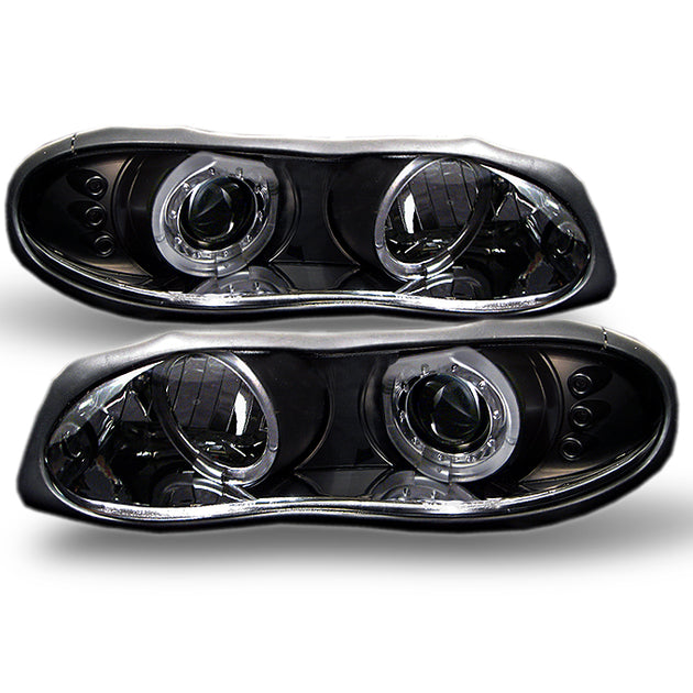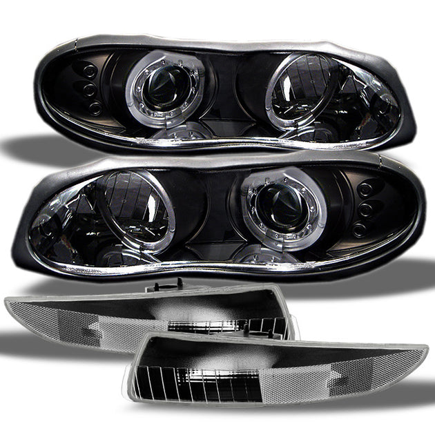 AKKON - For Chevy Camaro Black Bezel Dual CCFL Halo Ring Design Halogen Type Projector Headlights Lamps Pair