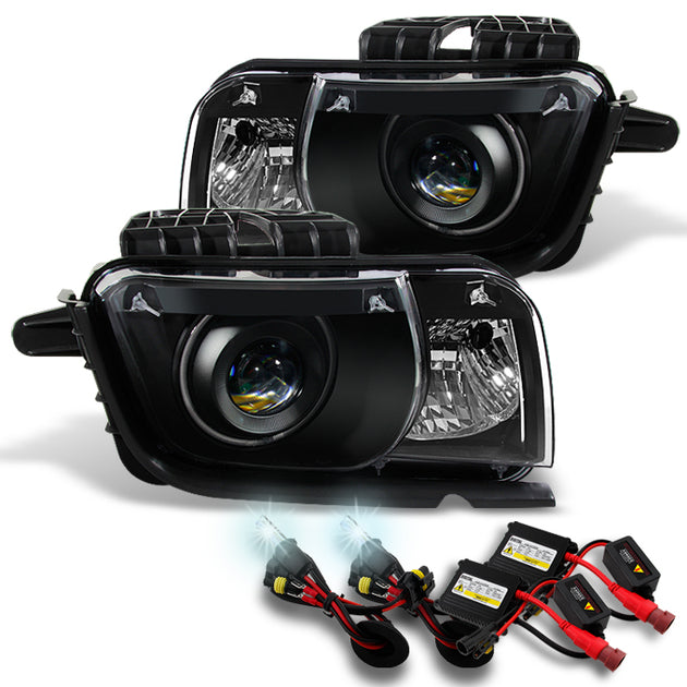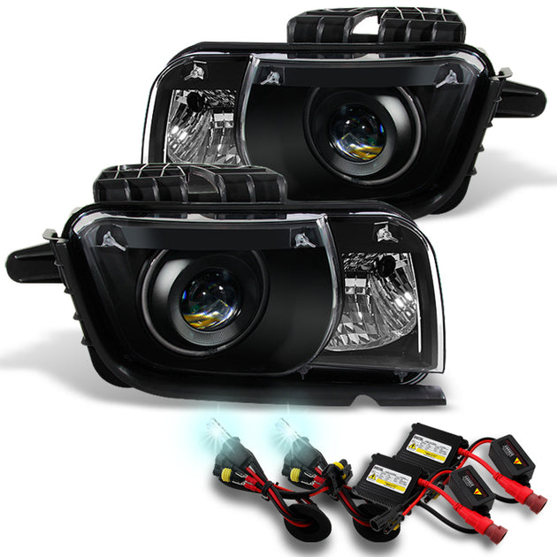 AKKON - For Chevy Camaro Sport Coupe Black Bezel Dual CCFL Halo Ring Design Projector Headlights Front Lamps