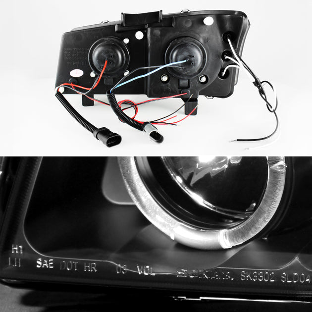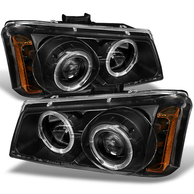 AKKON - For Chevy Silverado Avalanche Pickup Truck Black Dual Halo Ring LED Projector Replacement Headlights