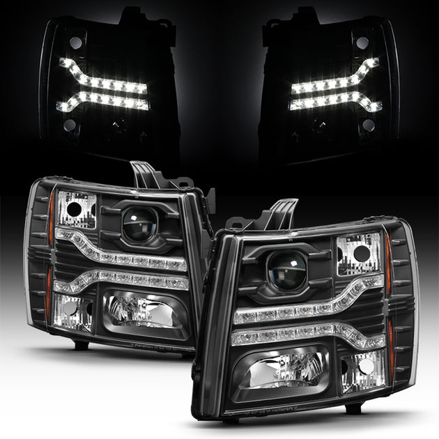 AKKON - For Chevy Silverado Pickup Truck Dual LED DRL Black Housing Projector Headlights Lamps