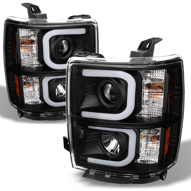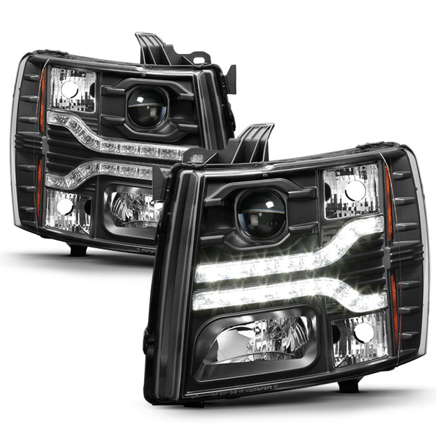 AKKON - For Chevy Silverado Black Bezel LED Daylight Light Tube Halo Design Projector Headlights Front Lamps