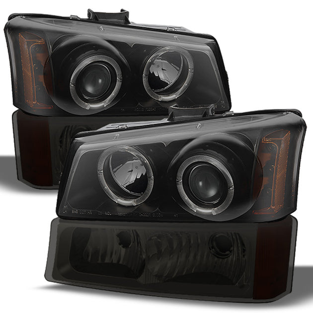 AKKON - For Chevy Silverado 1500 2500 3500 HD Black Smoked Dual Halo Projector Headlights +Bumper Light Pair