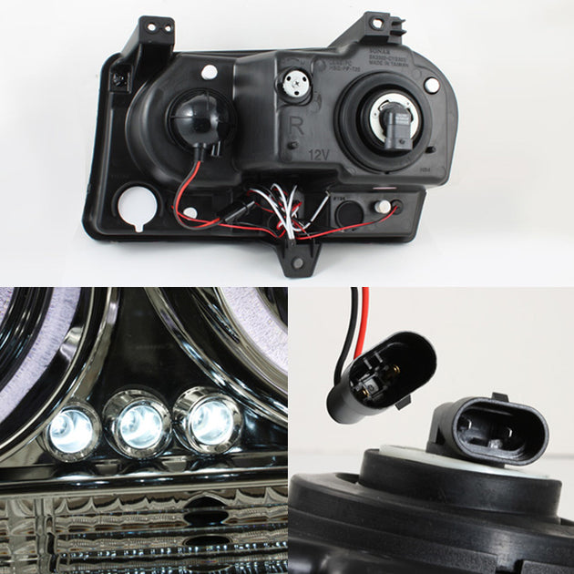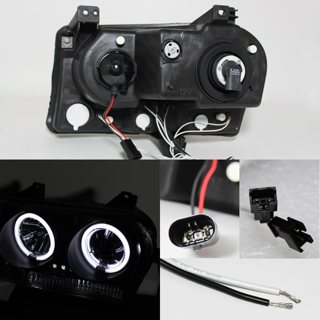 AKKON - For Chrysler 300 Sedan Black Bezel Dual Halo Rings Design Halogen Type Projector Headlights Lamps Pair