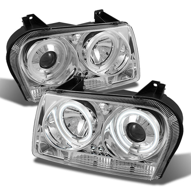 AKKON - For Chrysler 300 Sedan Halogen Type Chrome Clear CCFL Halo Rings Design Projector Headlights Lamps Pair