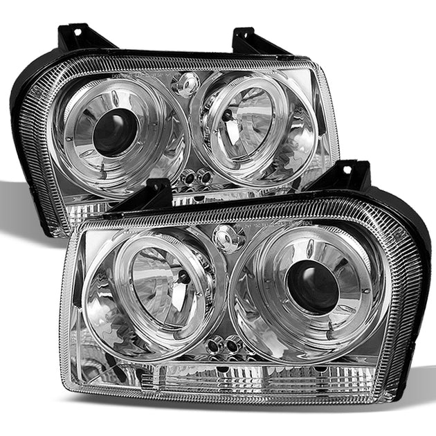 AKKON - For Chrysler 300 Sedan Chrome Clear Dual Halo Rings Design Halogen Type Projector Headlights Lamps Pair