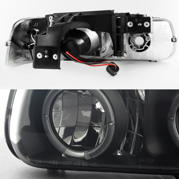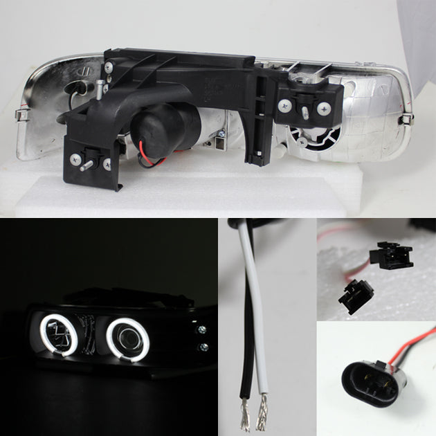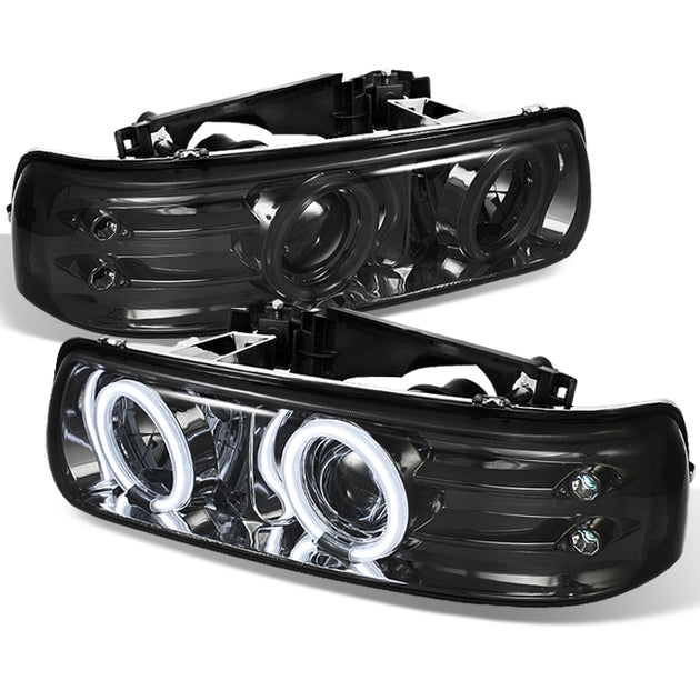 AKKON - For Chevy Silverado Suburban Tahoe Black Smoke CCFL Halo Ring Projector Headlights Pair Replacement