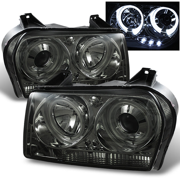 AKKON - For Chrysler 300C Sedan Halogen Type Smoked Smoke Dual CCFL Halo Ring LED Projector Headlights Lamp Pair