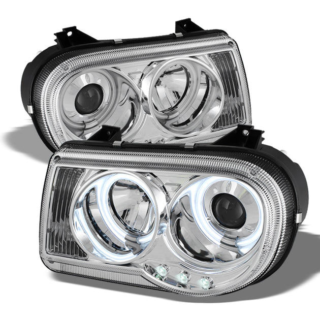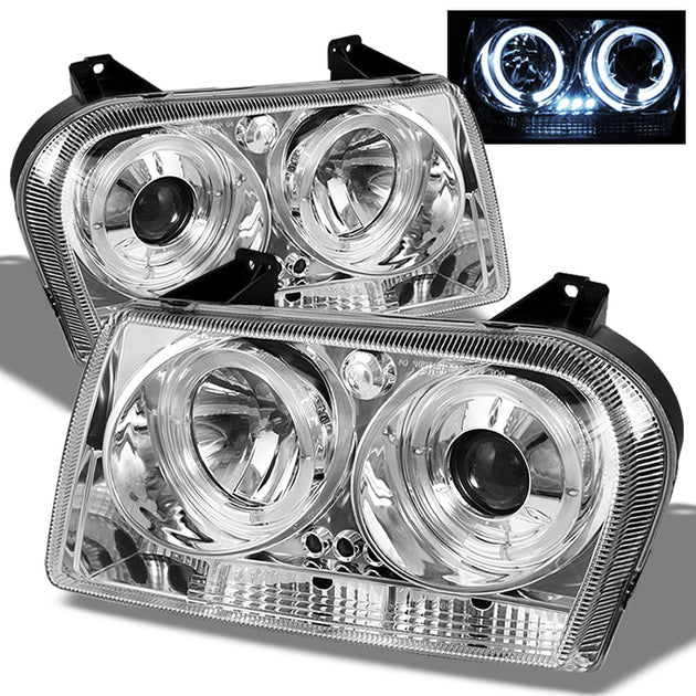 AKKON - For Chrysler 300C Sedan Halogen Type Chrome Clear Dual CCFL Halo Ring LED Projector Headlights Lamp Pair