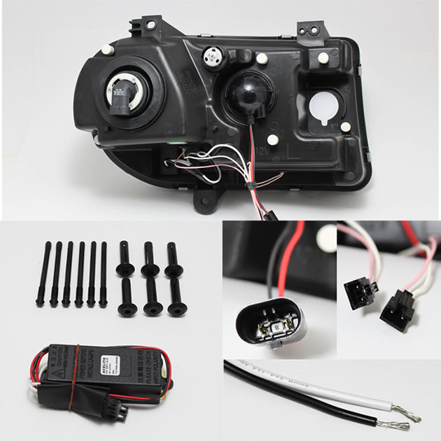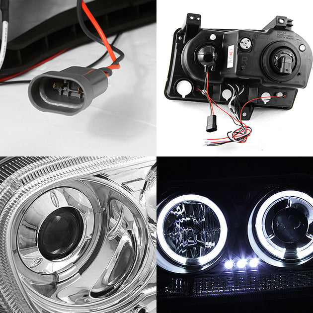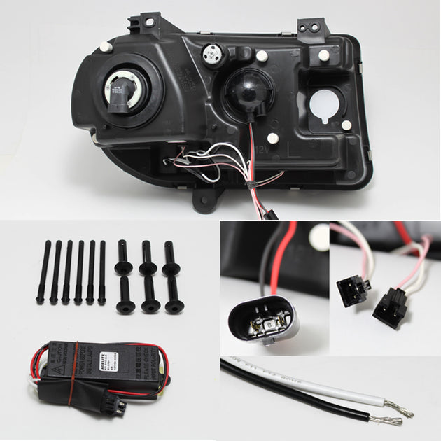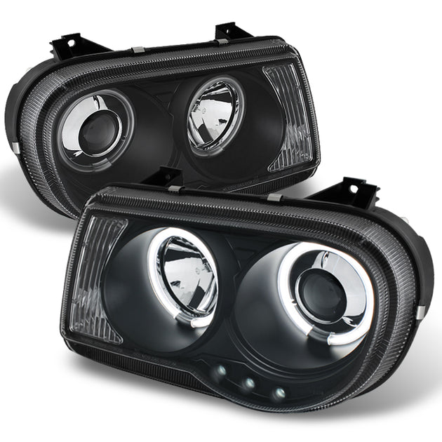 AKKON - For Chrysler 300C Sedan Halogen Type Black Bezel Dual CCFL Halo Ring LED Projector Headlights Lamps Pair