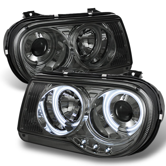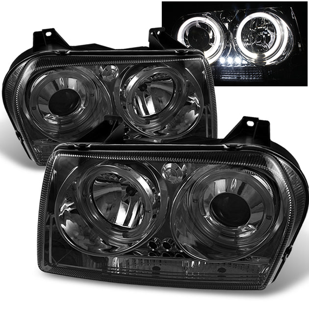 AKKON - For Chrysler 300 Sedan Halogen Type Smoked Smoke CCFL Halo Rings Design Projector Headlights Lamps Pair