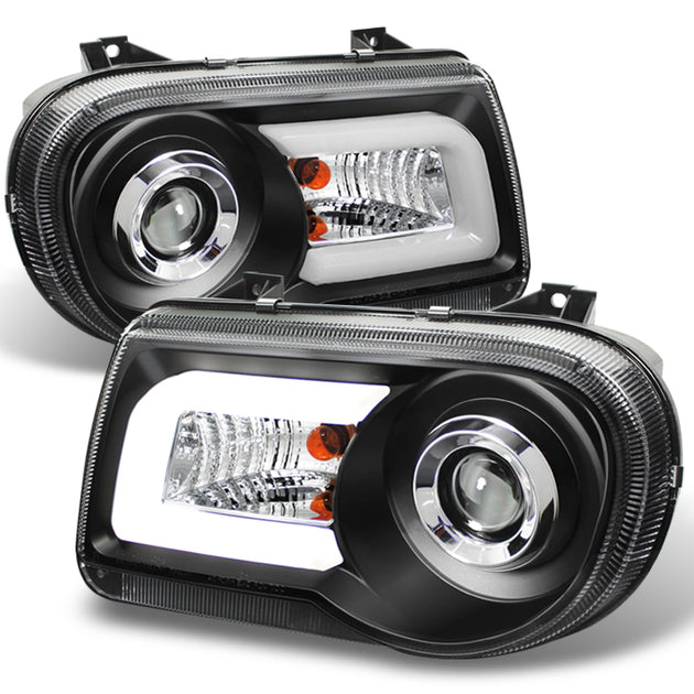 AKKON - For Chrysler 300C Sedan Halogen Type Black Bezel DRL LED Light Tube Design Projector Headlights Lamps