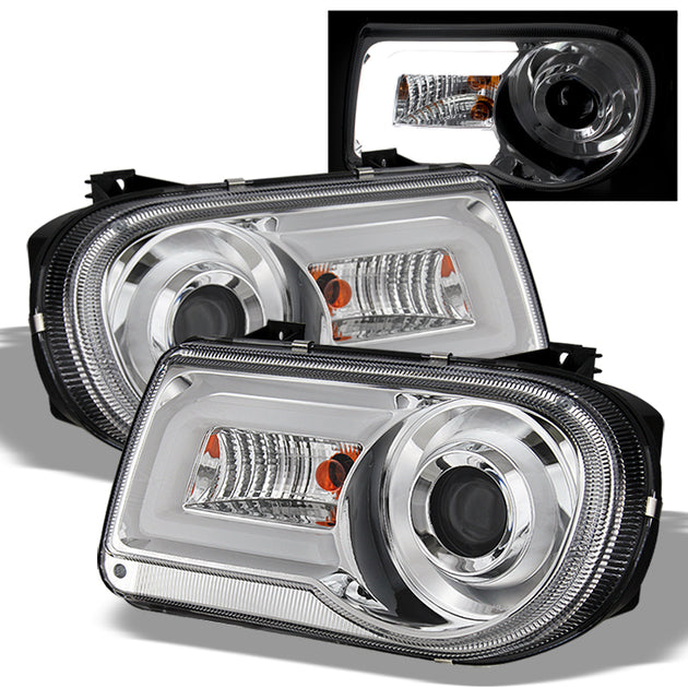 AKKON - For Chrysler 300C Sedan Halogen Type Chrome Clear DRL LED Light Tube Design Projector Headlights Lamps