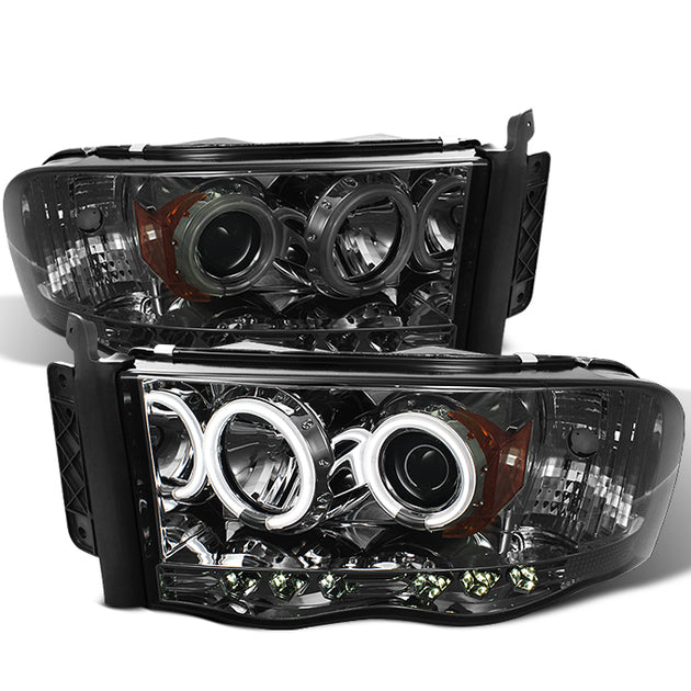 AKKON - For Dodge Ram Pickup Truck Smoked Smoke Dual CCFL Halo Ring LED Projector Replacement Headlights Pair
