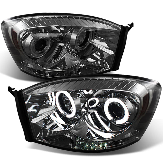 AKKON - For Dodge Ram Pickup Truck Smoked Smoke Dual CCFL Halo Ring LED Projector Headlights Pair Replacement