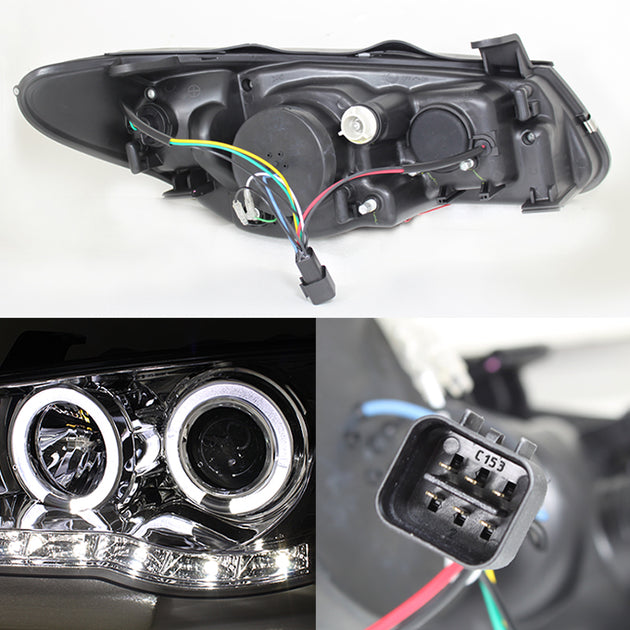 AKKON - For Elantra Black Bezel Dual Halo DRL Daylight LED Strip Projector Headlights Front Lamps Left + Right