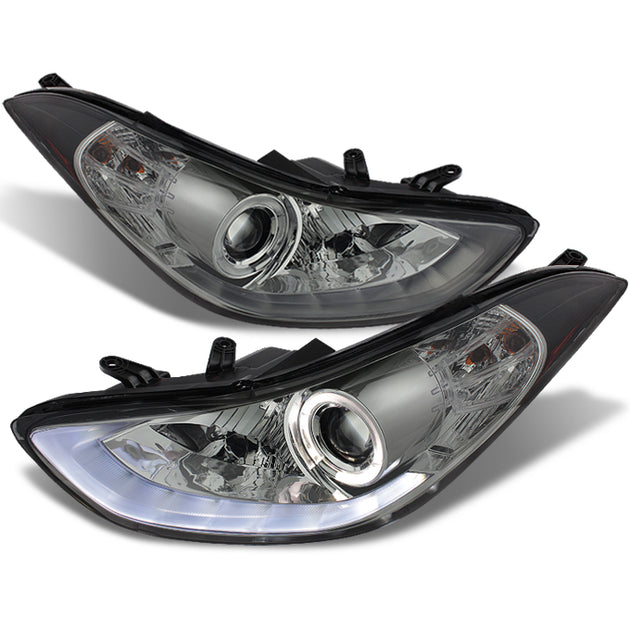 AKKON - For Elantra Smoked Smoke Dual Halo DRL Daylight LED Strip Projector Headlights Front Lamps Left + Right