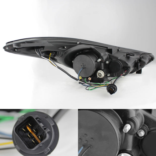 AKKON - For Elantra Black Bezel Dual Halo DRL Daylight LED Strip Projector Headlights Front Lamps Replacement