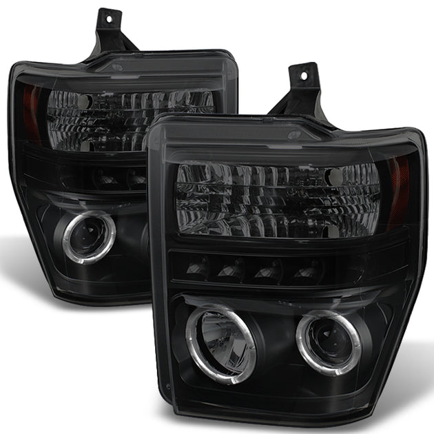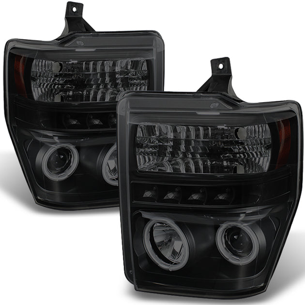 AKKON - For F-Series SuperDuty Pickup Truck Black Smoke CCFL Halo Ring LED Projector Headlights Left + Right