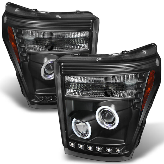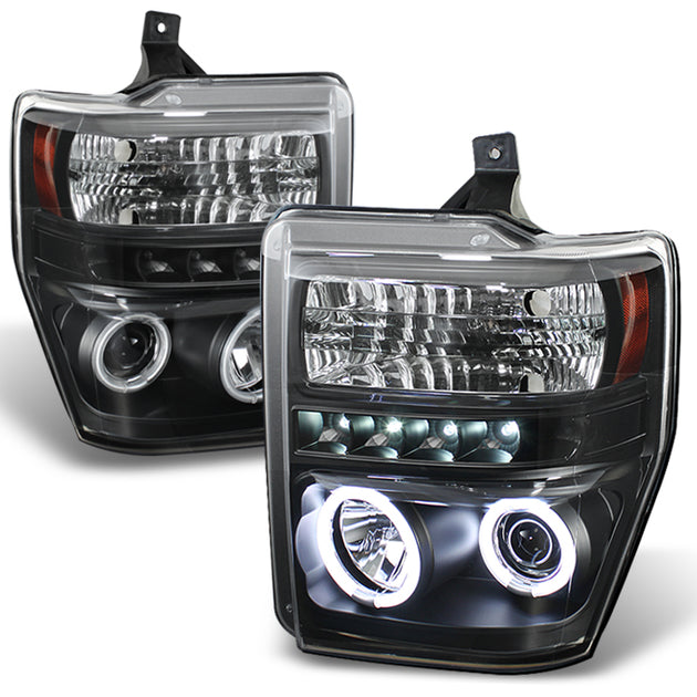 AKKON - For F-Series SuperDuty Pickup Truck Black Bezel CCFL Halo Ring LED Projector Headlights Left + Right