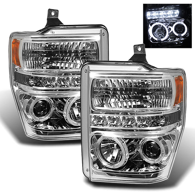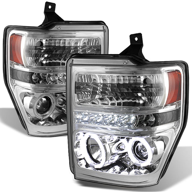 AKKON - For F-Series SuperDuty Pickup Truck Chrome Clear CCFL Halo Ring LED Projector Headlights Replacement