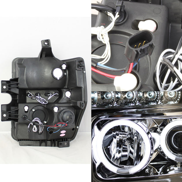 AKKON - For F-Series SuperDuty Pickup Truck Chrome Clear CCFL Halo Ring LED Projector Headlights Left + Right