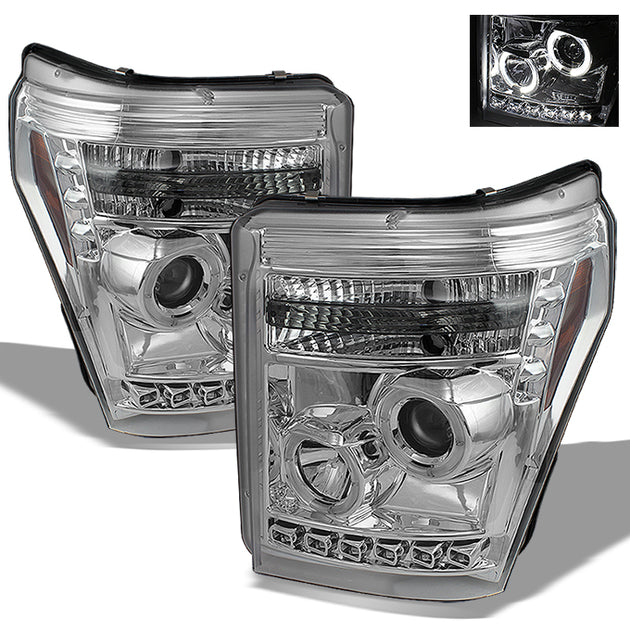 AKKON - For F-Series Superduty Chrome Clear Dual Halo Ring DRL Daylight LED Projector Headlights Replacement Set