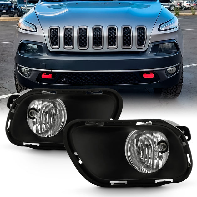 AKKON - Fits 2014-2018 Jeep Cherokee Halogen Type Chrome Fog Lights Pair w/ Power Switch+Wiring Harnesses +Bumper Bezel