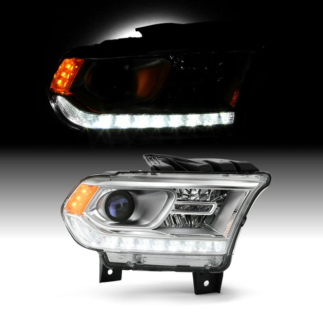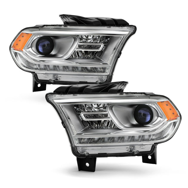 AKKON - Fits 2016-2020 Dodge Durango [Halogen Type] Chrome Bezel Projector Headlights w/ LED DRL Running Pair Driver+Passenger