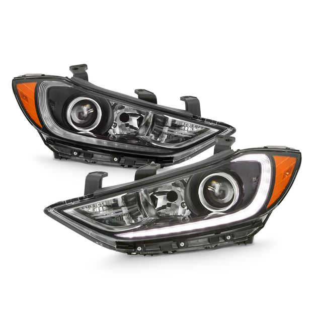 AKKON - Fits 2017 2018 Elantra Sedan LED Strip [Halogen Type] Projector Black Headlights Pair Left + Right w/o LED DRL