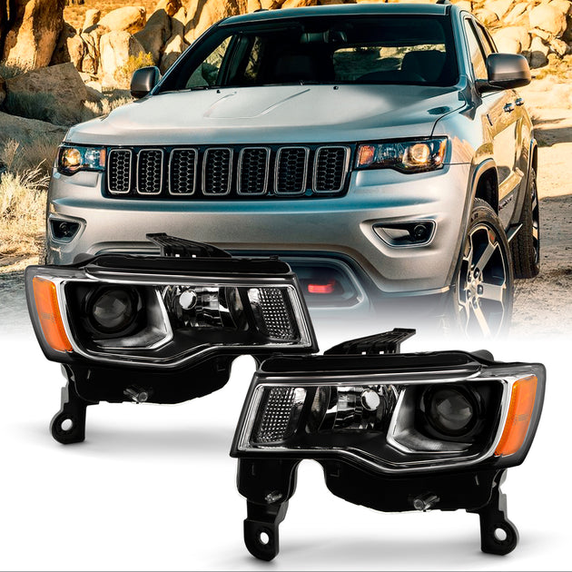 AKKON - Fits 2017-2021 Jeep Grand Cherokee SUV [Halogen Type] Projector Black Interior Headlights Pair Driver + Passenger