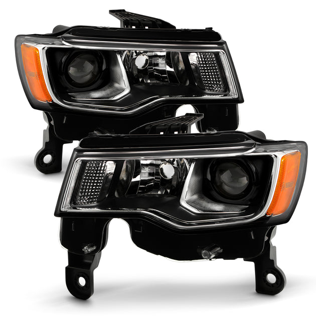 AKKON - Fits 2017-2021 Jeep Grand Cherokee [Halogen Type] Projector Chrome Headlights Pair Driver Left + Passenge Right