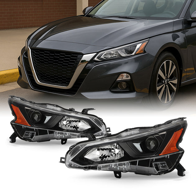 AKKON - Fits 2019 2020 2021 2022 Nissan Altima 4Dr Halogen Model OE Headlights Head Lamps- Pair Black Housing