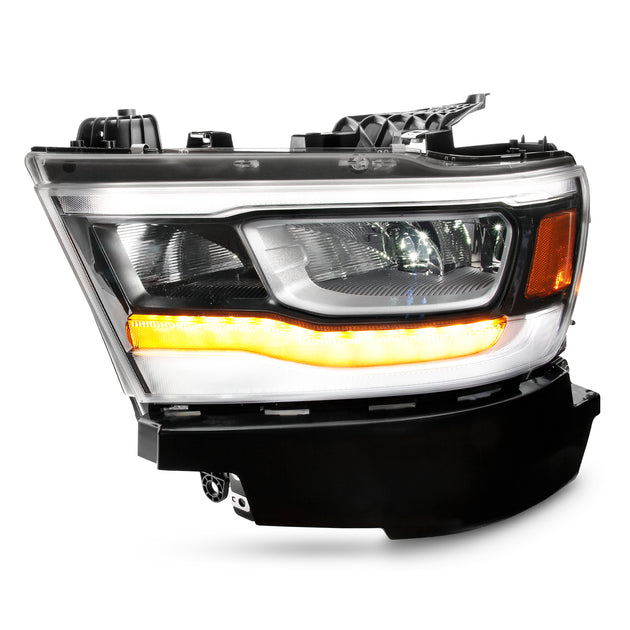 AKKON - Fits 2019-2023 Ram 1500 [Full LED] Tube DRL Running Signal Headlight w/ Black Bezel Reflector Driver Left Side