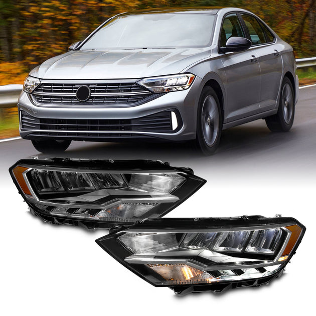 AKKON - Fits 2019-2023 VW Jetta S / Sport / SE [LED Low/High Beam] Projector Headlights Pair Driver Left+Passenger Right