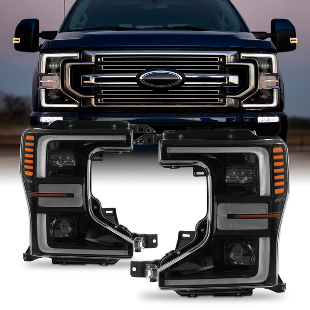 AKKON - Fits 2020-2022 Ford F250 F350 F450 SuperDuty FULL LED Black Headlights Pair Driver + Passenger w/ Sport Package