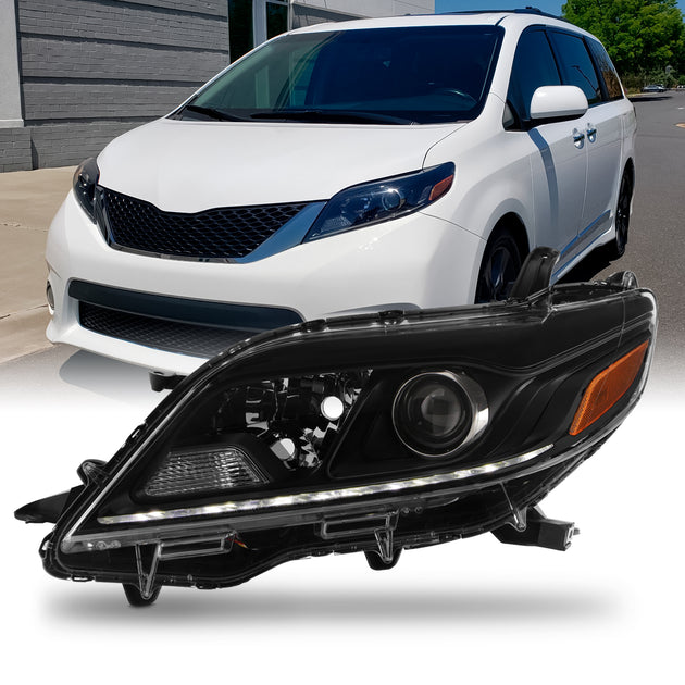 AKKON - Fits 2020 Toyota Sienna SE Projector Black Headlight Headlamp Driver Left Side w/ LED DRL Running Lamp